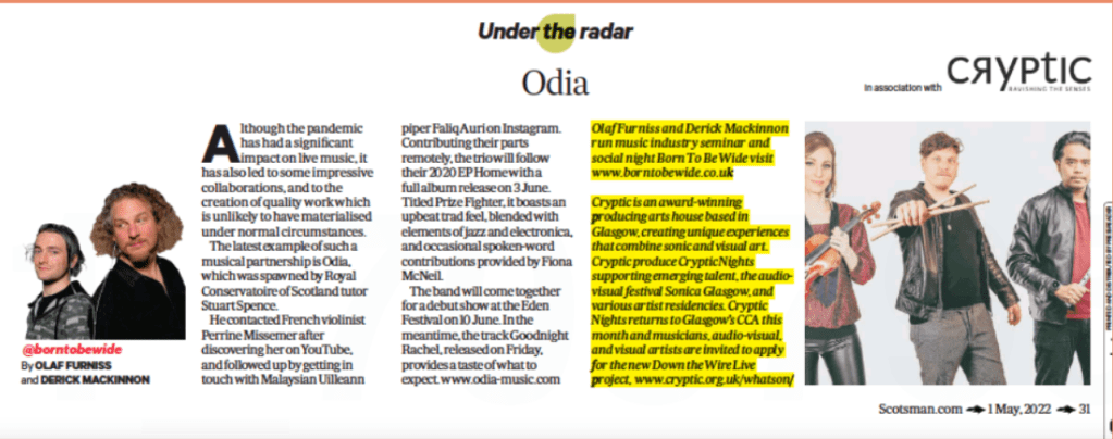 “One of the things I like about Odia – one of many – is their ability to sit at the intersection of folk, world, rock and classical music and to stitch them together, to weave something new” – Alex Monaghan.